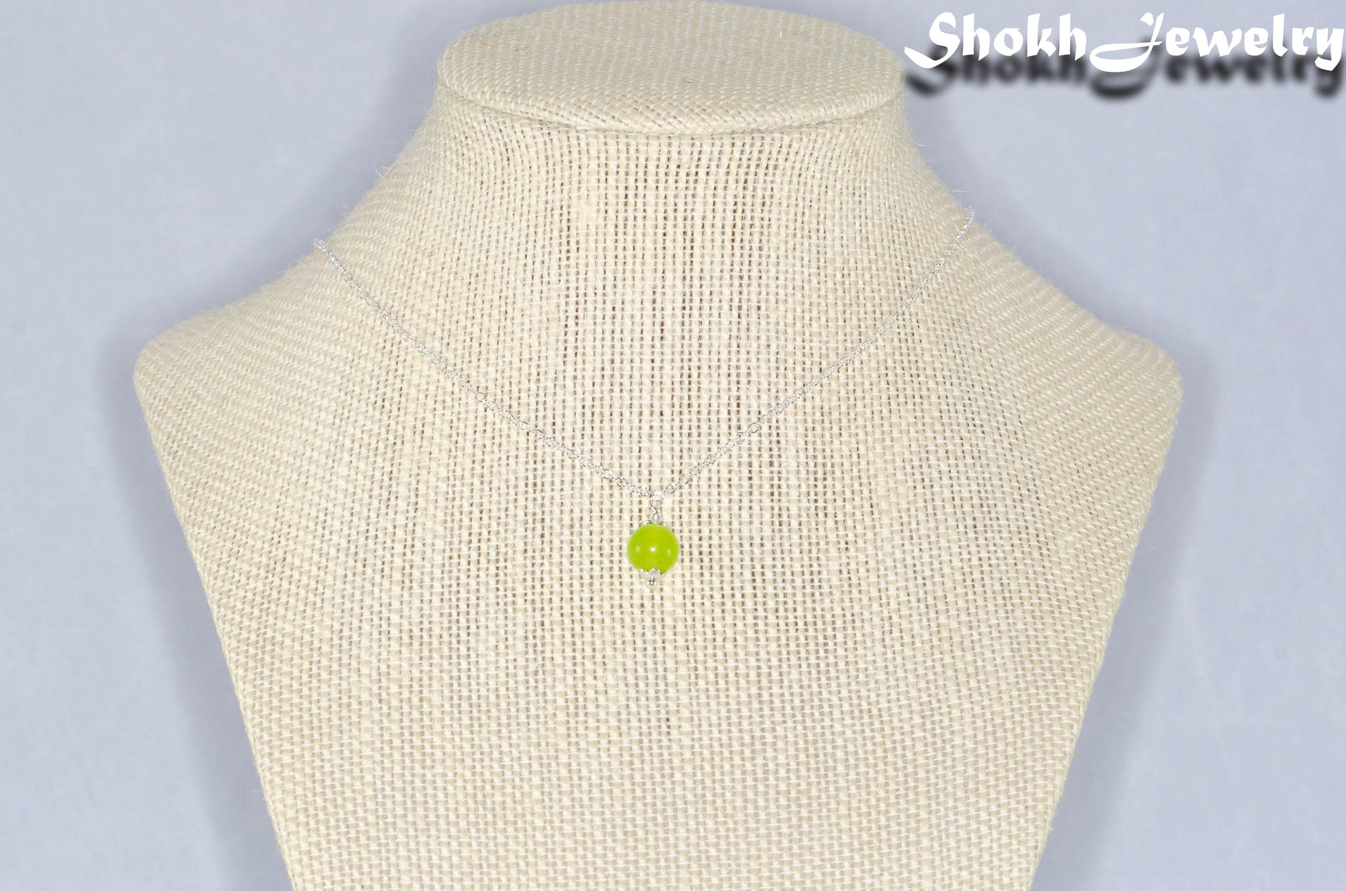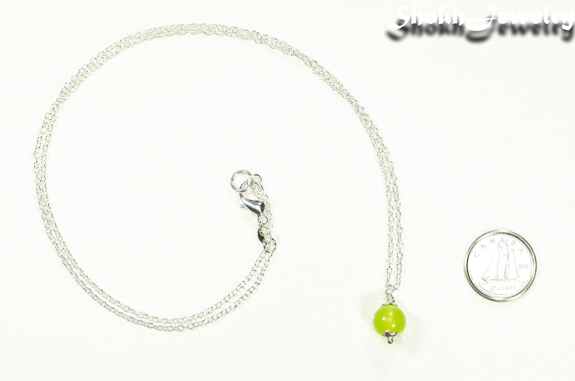 This delicate necklace is made with 8mm natural Peridot stone and a 1.2mm silver plated chain necklace with lobster claw clasp closure.