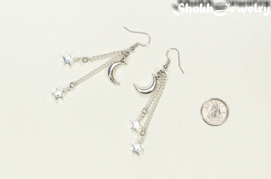 Lucky Four Leaf Clover Charm and Green Glass Bead Earrings