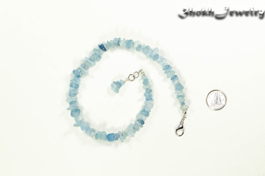 Natural Aquamarine Crystal Chip Anklet, March Birthstone Jewelry