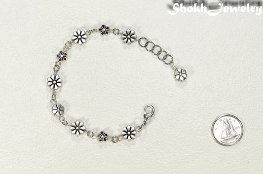 Freshwater Pearl and Seed Bead Anklet with Silver Plated Beads