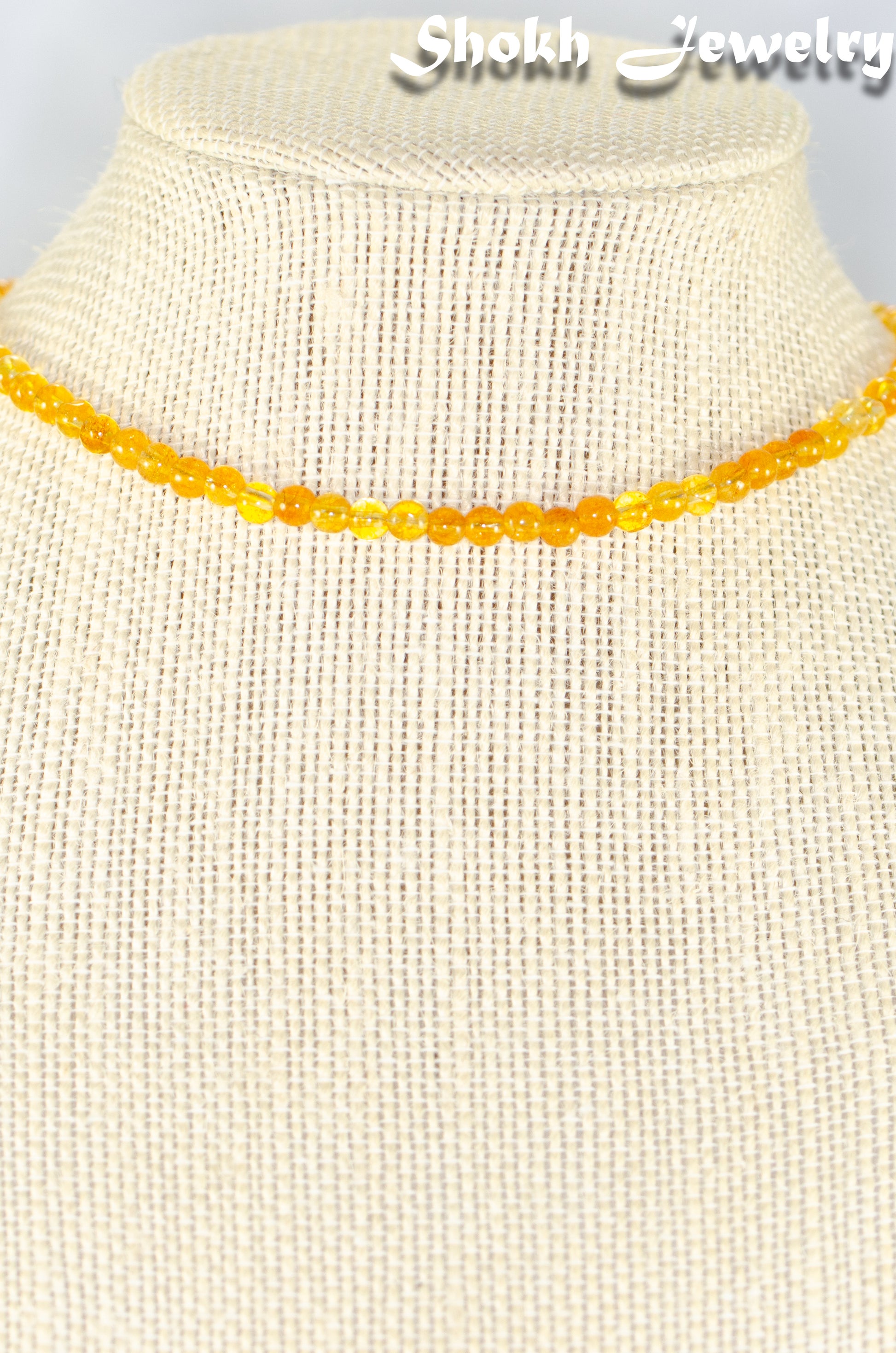 This gorgeous choker necklace is handmade with 4mm natural citrine crystal beads strung on sturdy bead stringing wire, finished with a lobster clasp and 0.5-inch extender chain and a cute little dangle. The clasp is made of metal alloy and the extender chain is made of stainless steel.