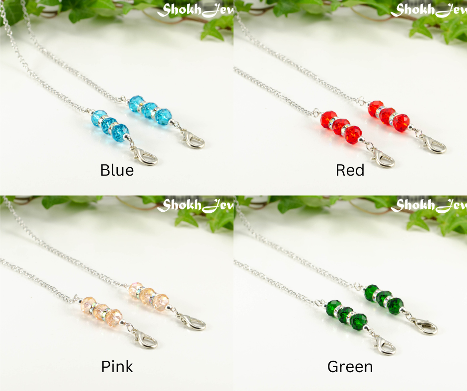 This simple and elegant mask lanyard/eyeglass chain is made with faceted glass crystal and sparkly rhinestone beads, silver plated spacer beads, lobster claw clasps and stainless steel chain. Please choose the colour of the glass crystal beads from the drop down menu.